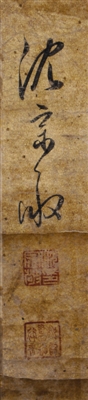 沈宗敬(1669—1735),字南季,又字恪亭,号狮峰,亦作狮峰道人,又号卧虚山人、双鹤老人、双杏草堂主人等,华亭(今上海市松江区)人。康熙二十七年进士,仕至太常少卿,提督四译馆。据载,沈崇敬出生于江南的一个士大夫家庭,其父沈荃,字贞蕤,号绎堂、充斋,为康熙时翰林院侍读学士,礼部侍郎,著名书法家,是康熙皇帝的书法老师。对此,康熙帝曾说:“朕初学书,(沈)崇敬之父(沈)荃侍,屡指陈得失,至今每作书,未尝不思(沈)荃之勤也。”常与康熙帝切磋书法,屡受嘉赏,是董其昌书学的倡导者之一。沈崇敬自幼在这种家庭中成长,工书擅画。其山水师倪、黄,兼巨然法,笔力古健,名重士林。康熙南巡时,曾献画于皇上,蒙赐清风南雪匾额。其书法幼承家学,倾慕董其昌书法,他的楷书,结字却以欹侧中平正为主要特点,且行距较疏,笔法温润,是从董书中继承而来。他的行书,大体如楷书的行化,或参以米书纵逸丰姿的特点,董其昌用笔特点与风神,现江苏省淮安市博物馆收藏的《行书诗轴》就是他的作品。